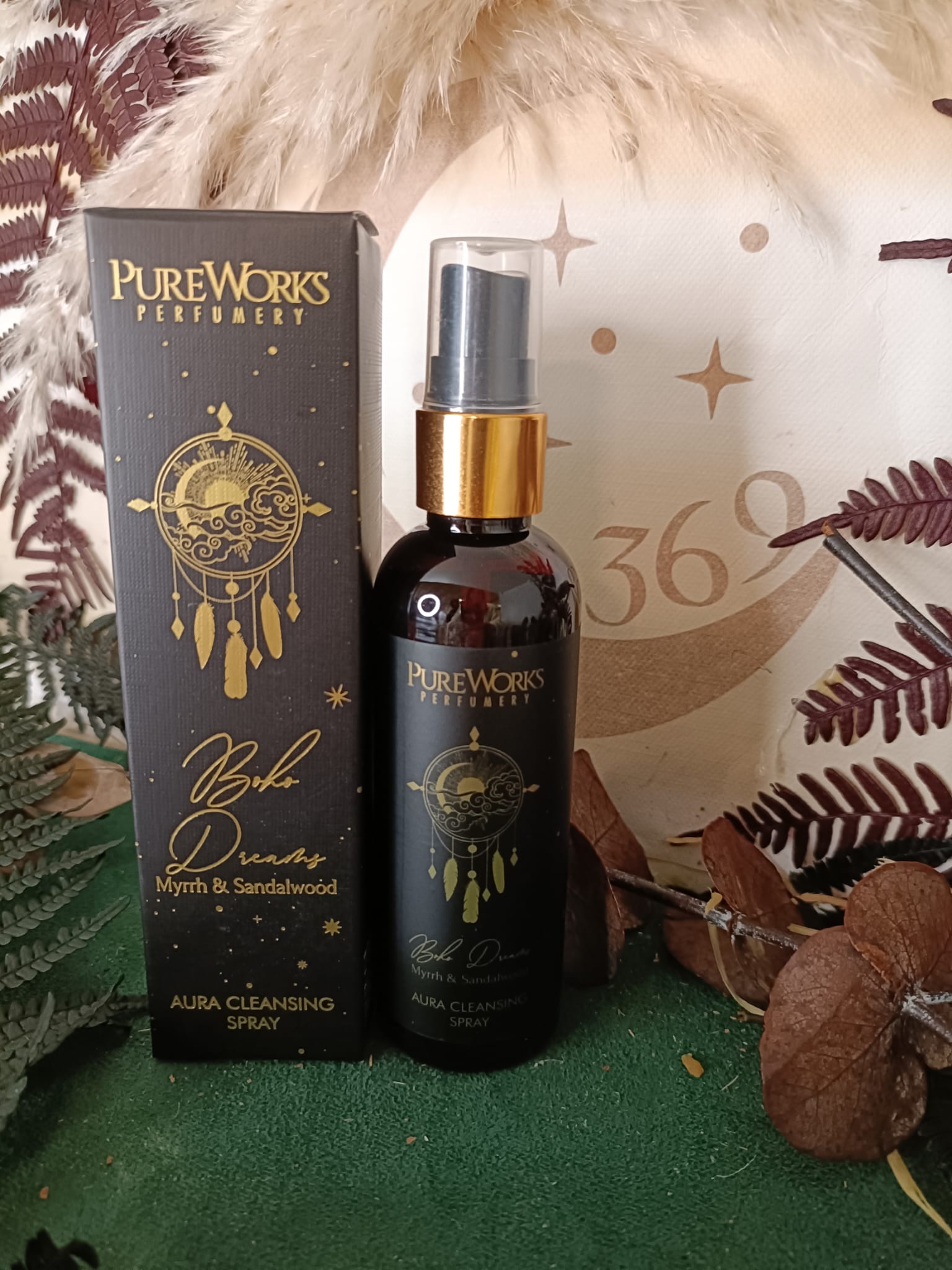 Ambientador Spray Boho Dreams – Mirra y Sándalo (100 ml) | Armonización Espiritual y Limpieza Energética sin Alcohol Crea un ambiente de calma, conexión y espiritualidad con el Spray Boho Dreams de la colección PureWorks Perfumery de Song of India. Este spray energético sin alcohol está elaborado con las notas cálidas y profundas de mirra y sándalo, dos resinas sagradas utilizadas desde la antigüedad para purificar, meditar y proteger.