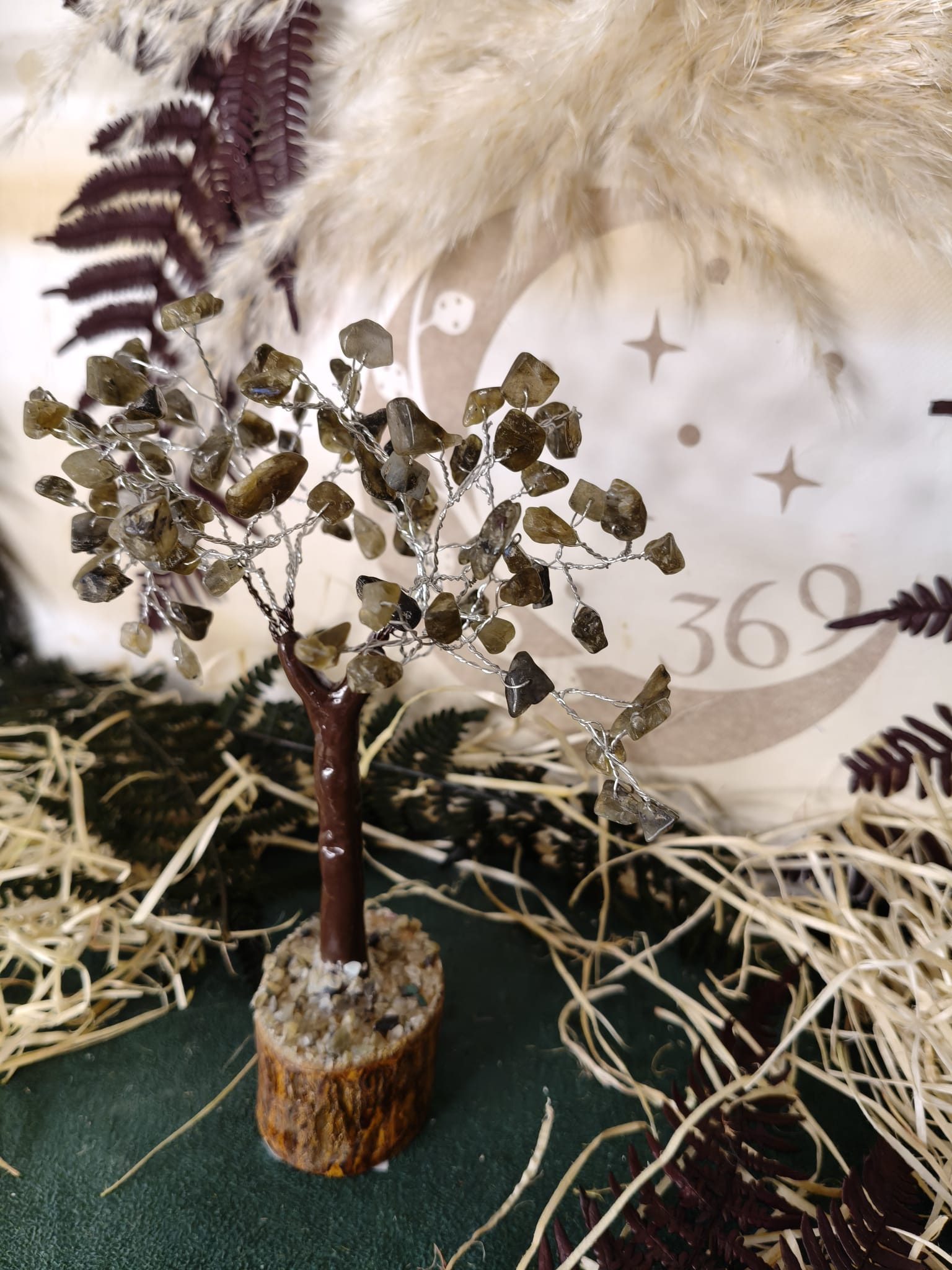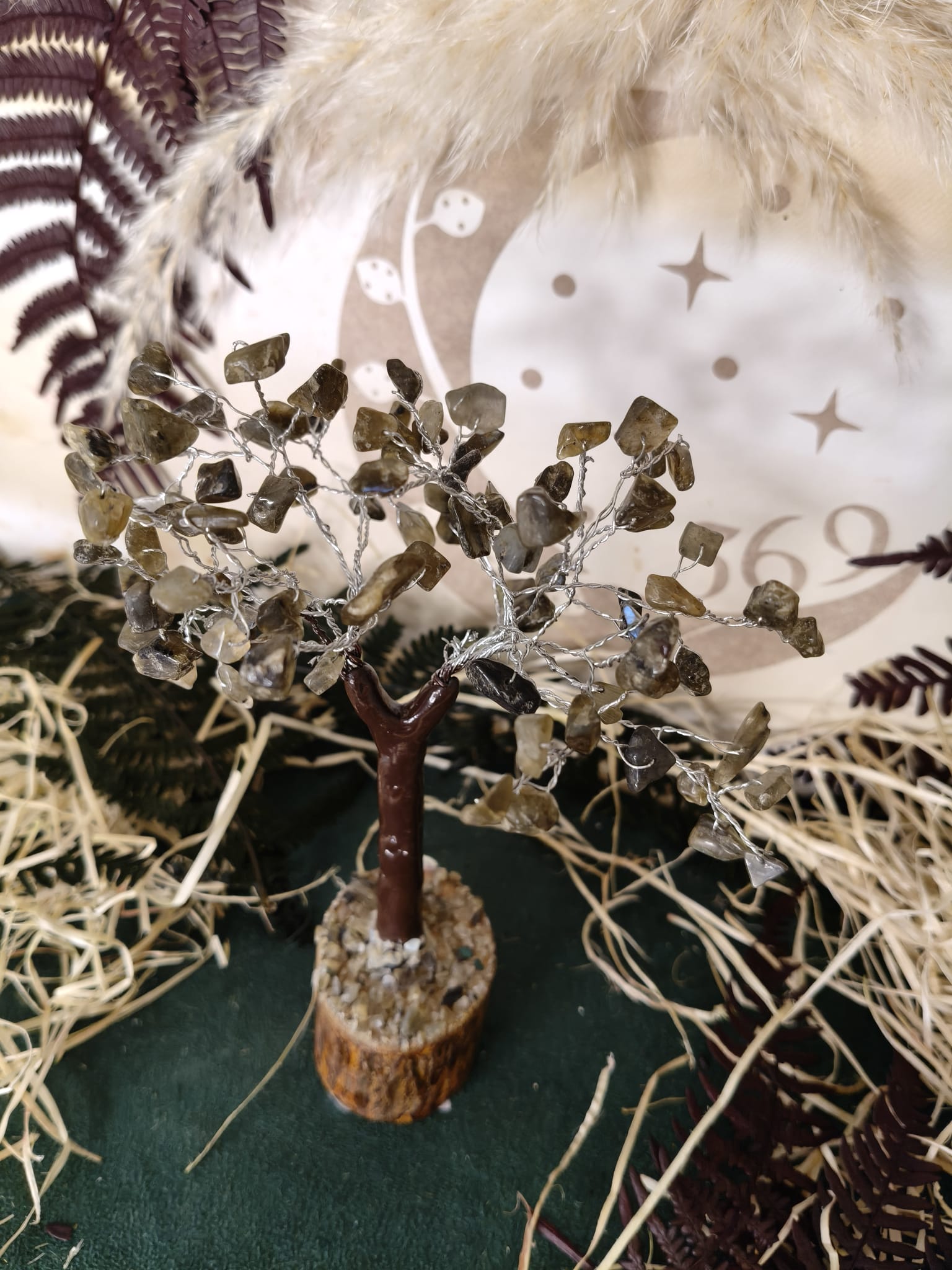 El Árbol de 100 Piedras de Labradorita es una pieza artesanal única que combina la belleza decorativa con el poder energético de la Labradorita, una de las piedras más apreciadas en el mundo esotérico por sus propiedades de protección, intuición y transformación.