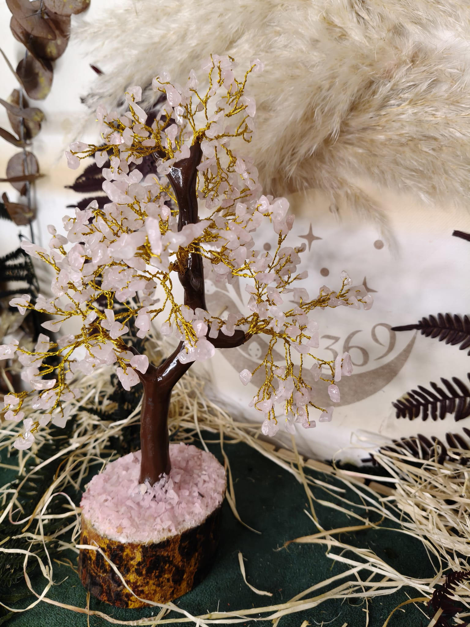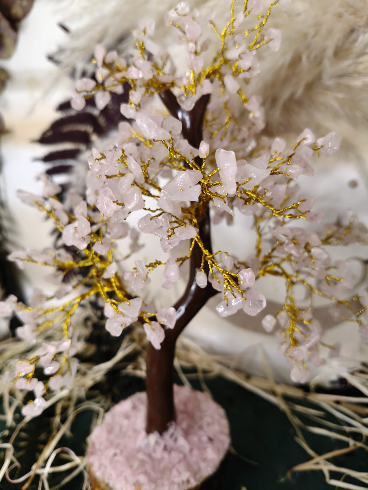 🌸 Árbol de Cuarzo Rosa con 500 Piedras Naturales – Amor, Armonía y Energía Positiva. Este precioso árbol de cuarzo rosa, elaborado con 500 chips naturales, irradia una energía suave, amorosa y sanadora.
