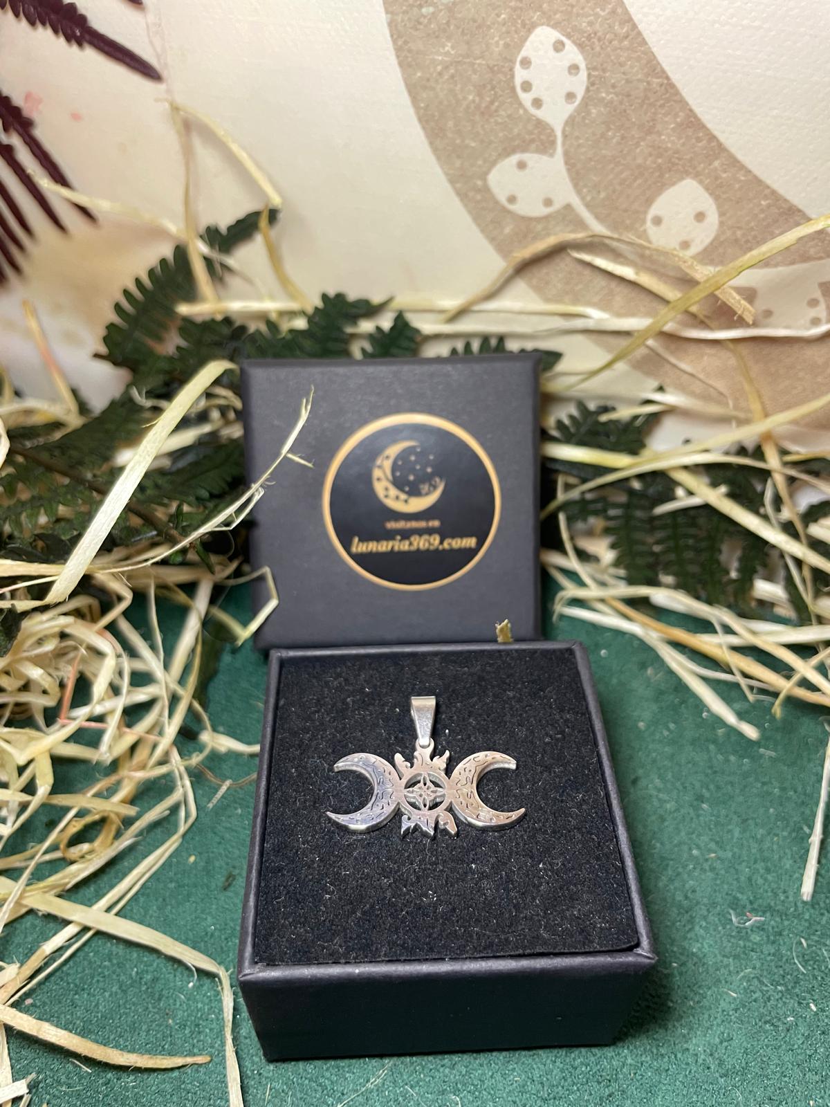 La Triple Luna simboliza la conexión con los ciclos naturales, la sabiduría interna y la protección divina femenina.