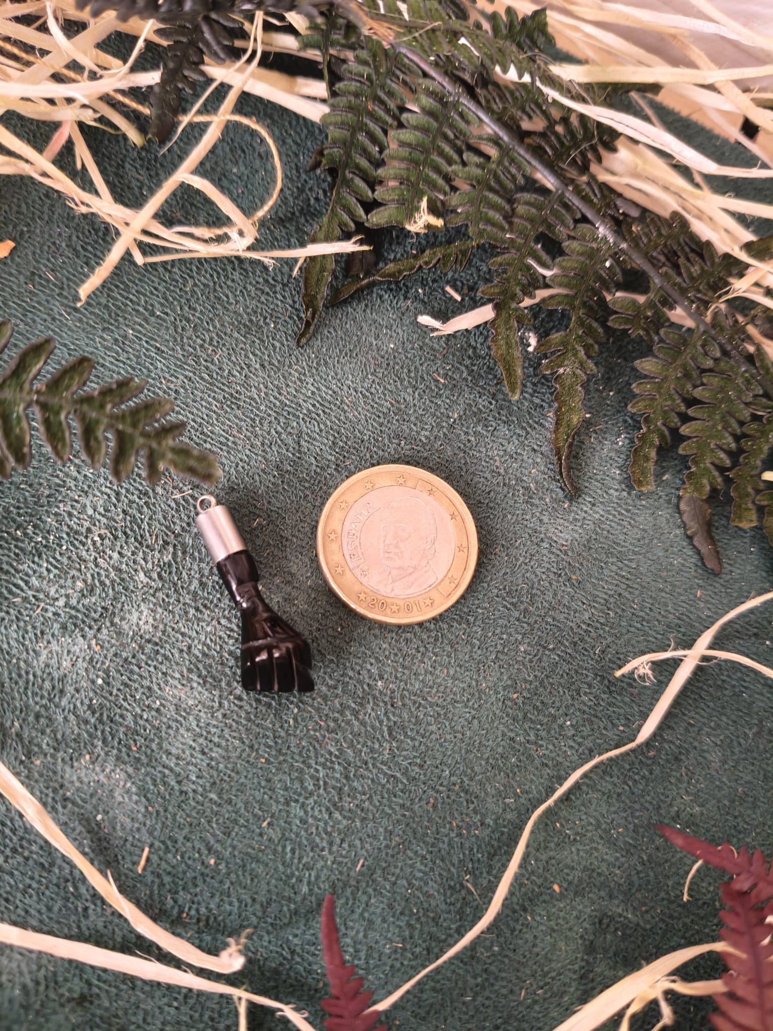 Lleva el colgante de azabache en forma de figa en el cuello para protegerte contra energías negativas y atraer fuerza y equilibrio. Es ideal como amuleto personal o como regalo especial para alguien que necesite protección y energía positiva.
