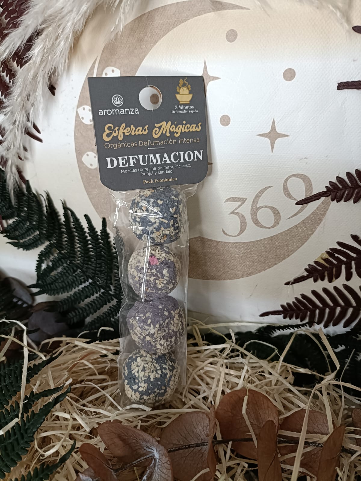 Purificación Total: Las esferas de defumación están elaboradas con una mezcla exclusiva de resinas y hierbas naturales que actúan eficazmente para limpiar el ambiente de energías no deseadas.