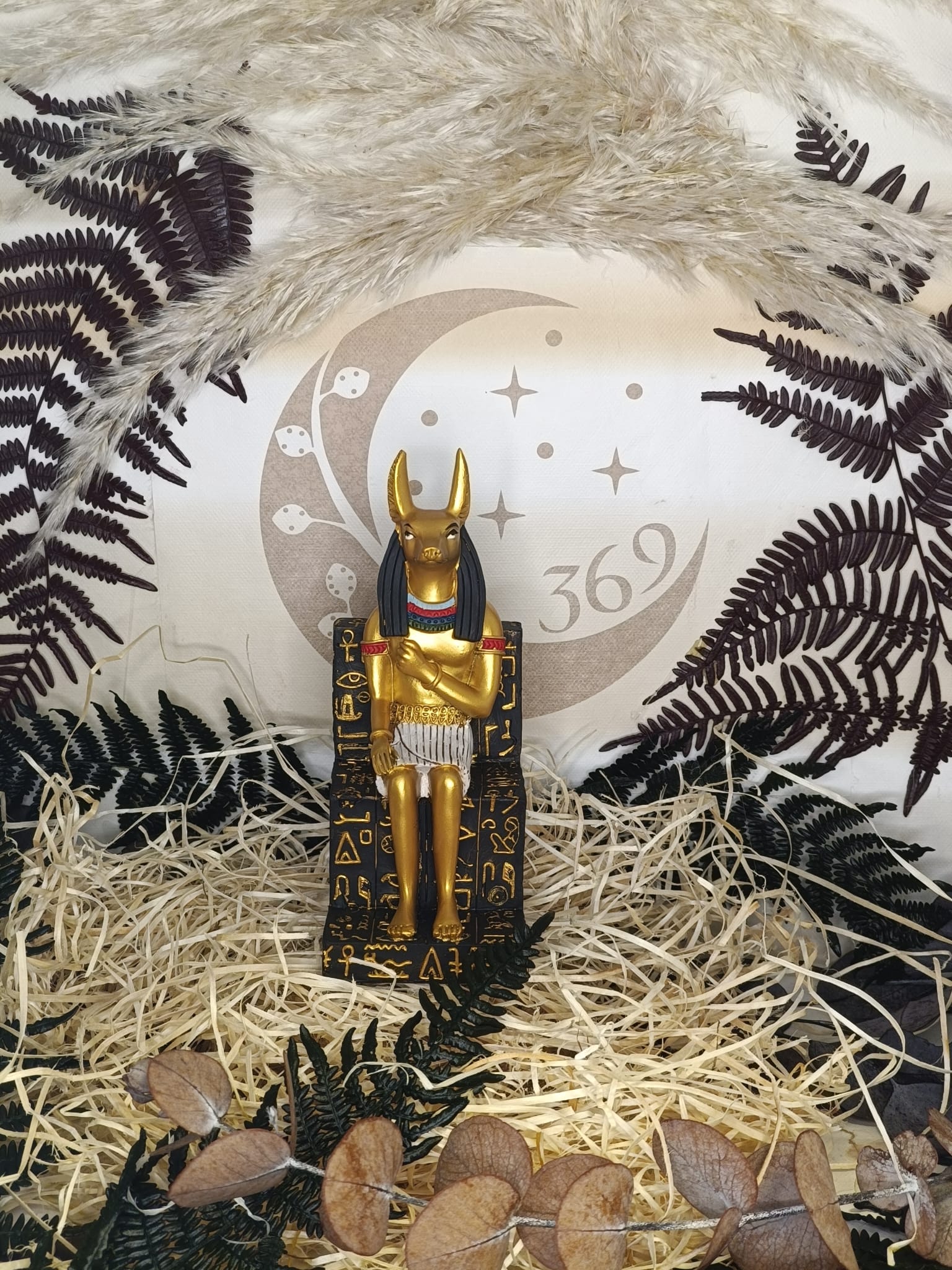 Hecha en Resina y Pintada a Mano Adquiere la poderosa Figura de Anubis Sentado, una obra esotérica única disponible en Lunaria369, tu tienda especializada en productos espirituales en Sanxenxo, Pontevedra.