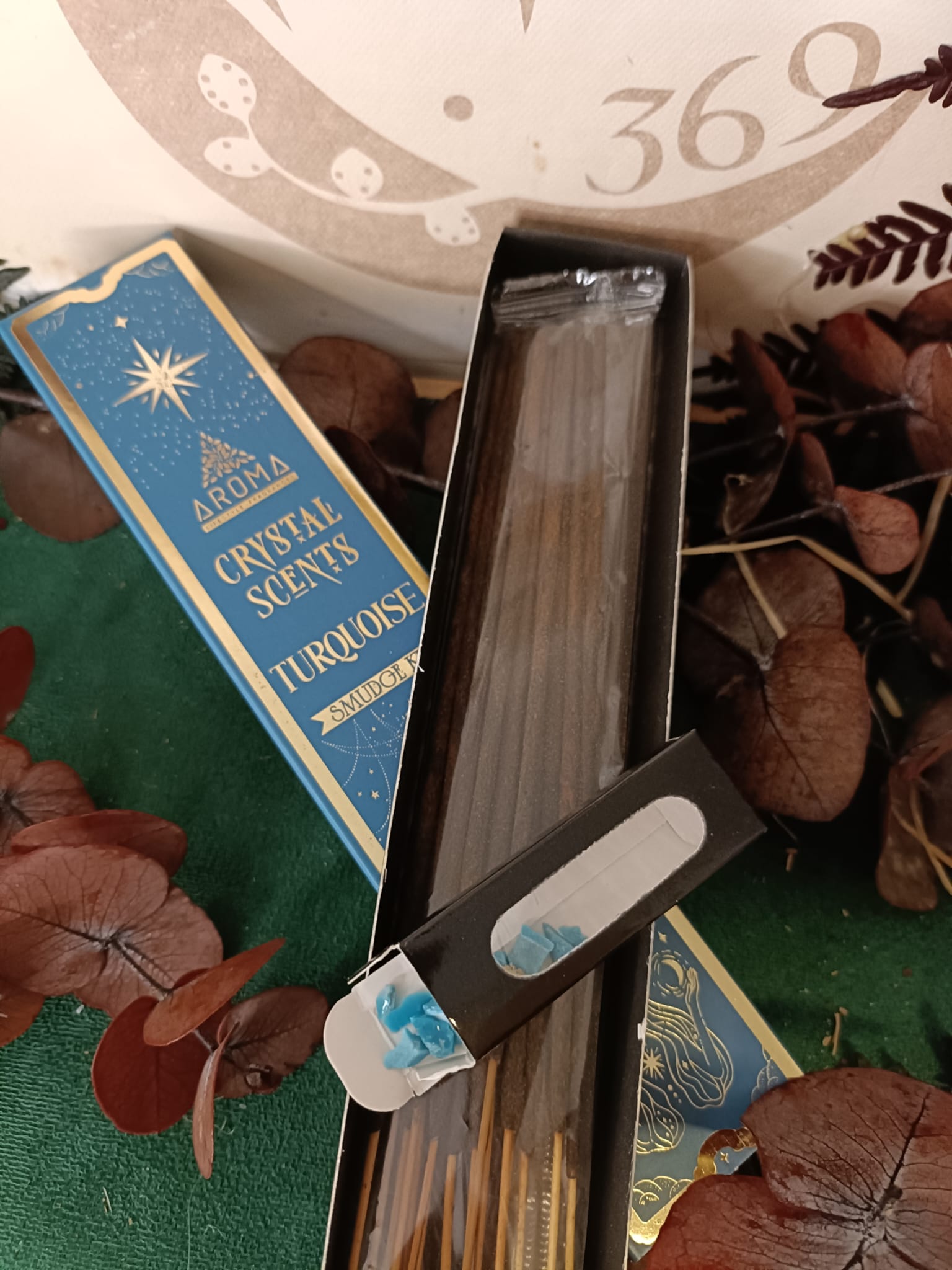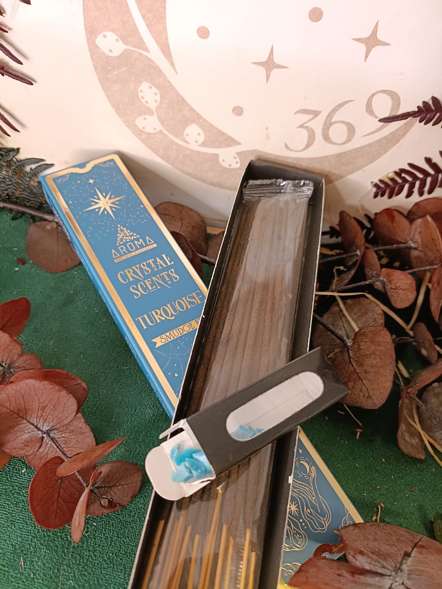 🔮✨ Incienso Crystal Turquesa – Aroma | 20g con virutas de piedra turquesa 🌬️