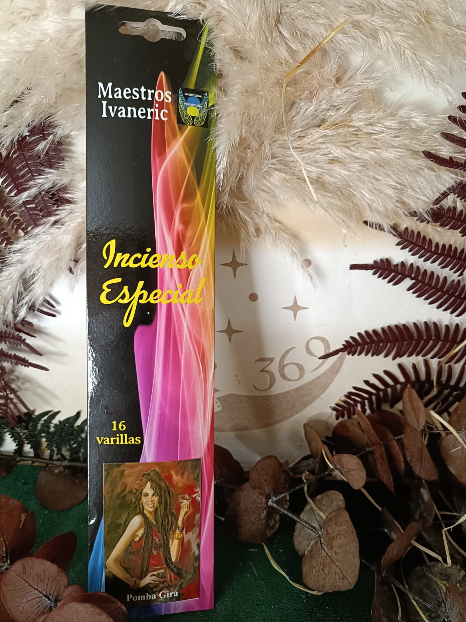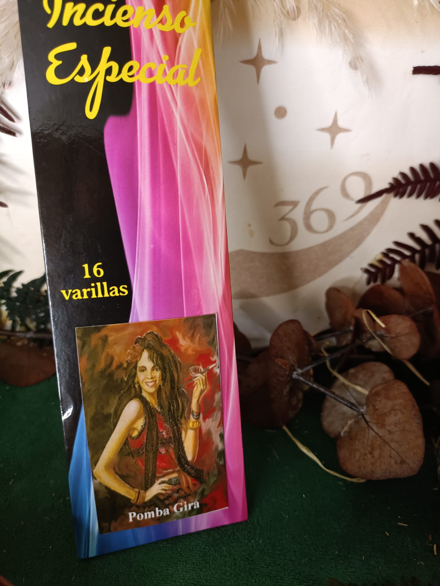 Incienso Especial Pomba Gira – Amor, Pasión y Energía Espiritual Eleva tus rituales de amor con el Incienso Especial Pomba Gira, un poderoso incienso potenciado, ideal para atraer la pasión, el deseo y el magnetismo personal. Cada paquete contiene 16 varillas de incienso de alta calidad, elaboradas con esencias seleccionadas y cargadas energéticamente para invocar la vibración de Pomba Gira.