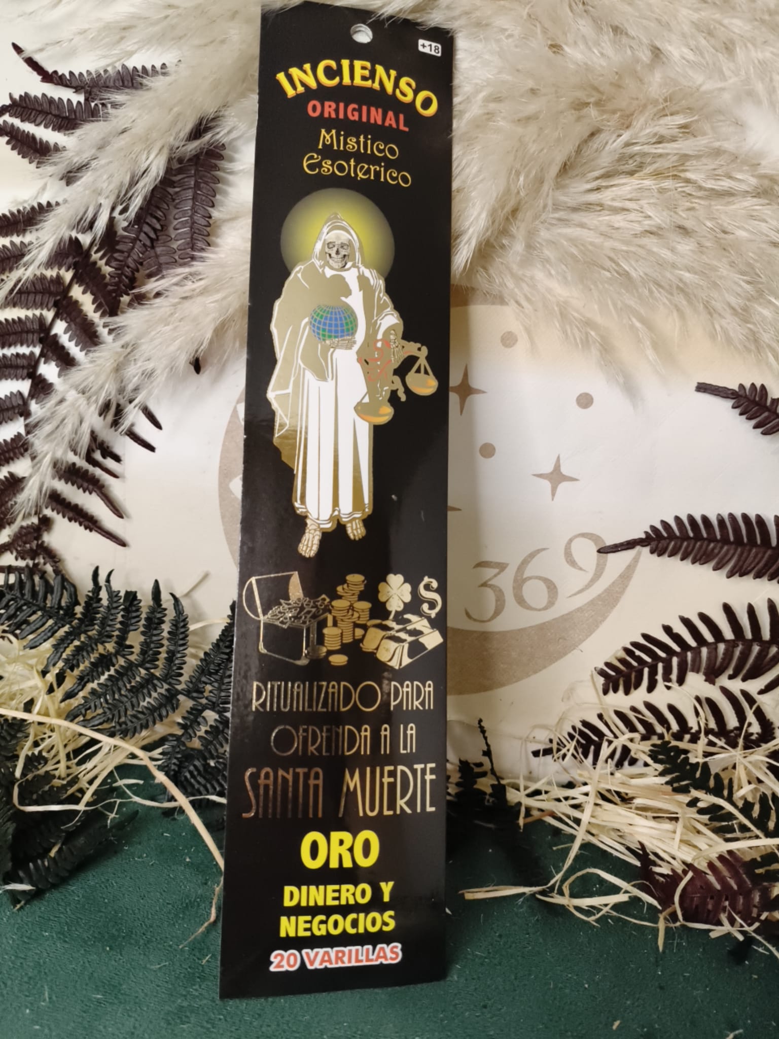 Incienso Místico Santa Muerte Oro – Prosperidad, Protección y Éxito Económico. El Incienso Místico Santa Muerte Oro es un incienso ritualizado especialmente indicado para temas relacionados con el dinero, los negocios y la protección del patrimonio. Su energía está enfocada en atraer el éxito económico, fortalecer la estabilidad material y retirar la mala fe, envidias o influencias negativas provenientes de enemigos o terceros.