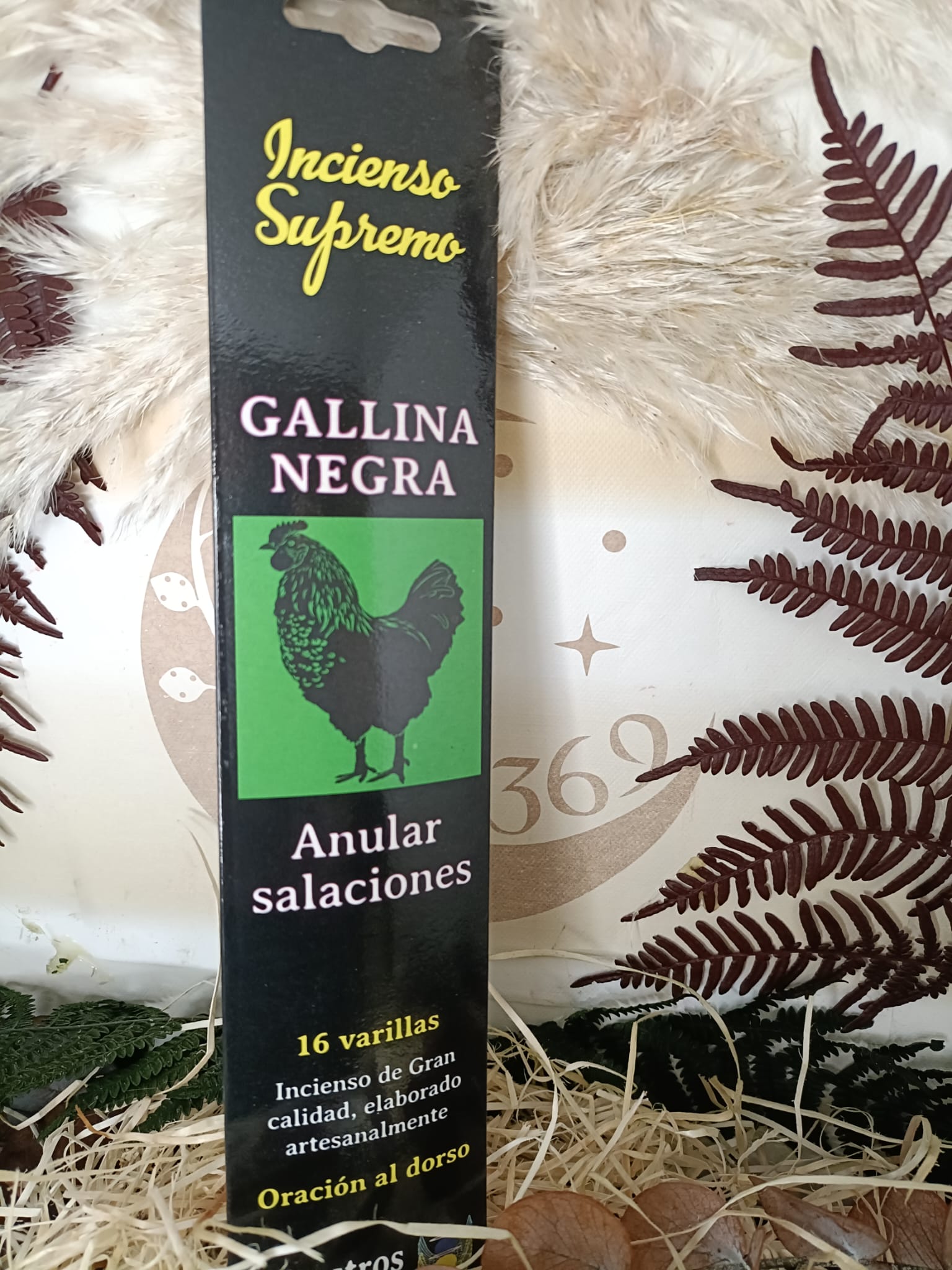 Incienso Supremo de Propósito Gallina Negra – Aleja Salaciones y Magias. Explora el poder del Incienso Supremo de Propósito Gallina Negra, Este incienso, presentado en un paquete de 16 varillas, está preparado para alejar salaciones, destruir magias y alejar enemigos.