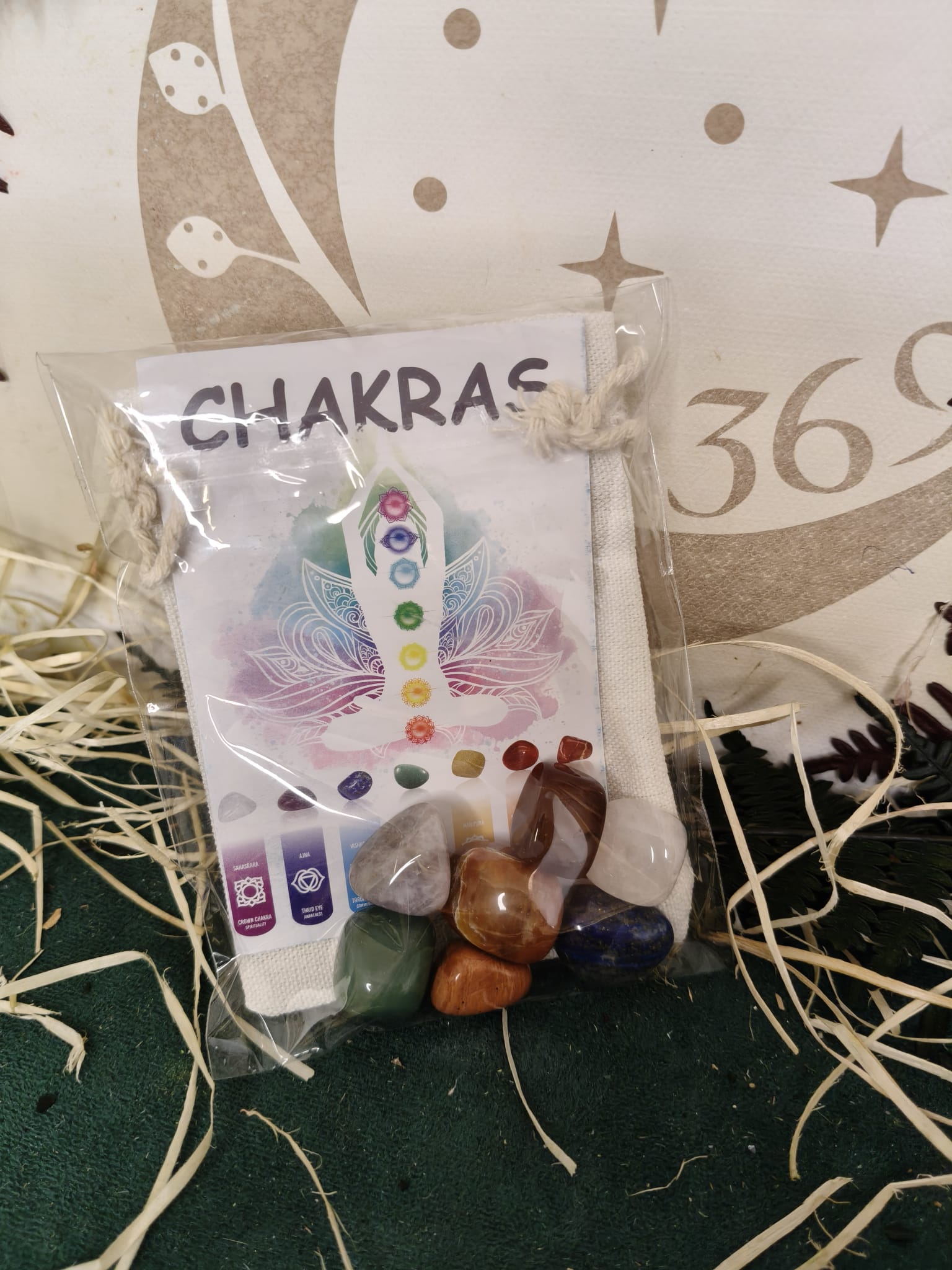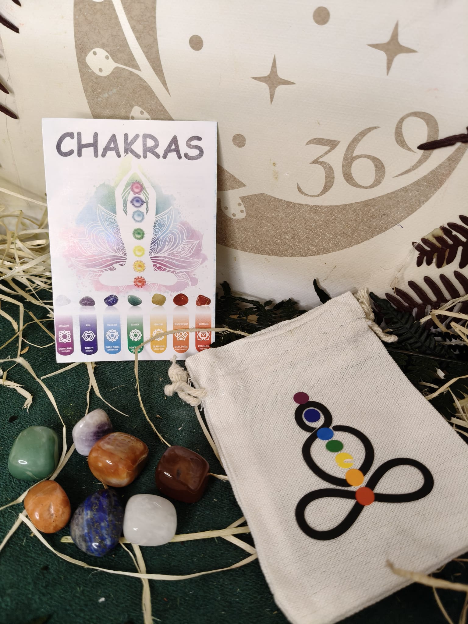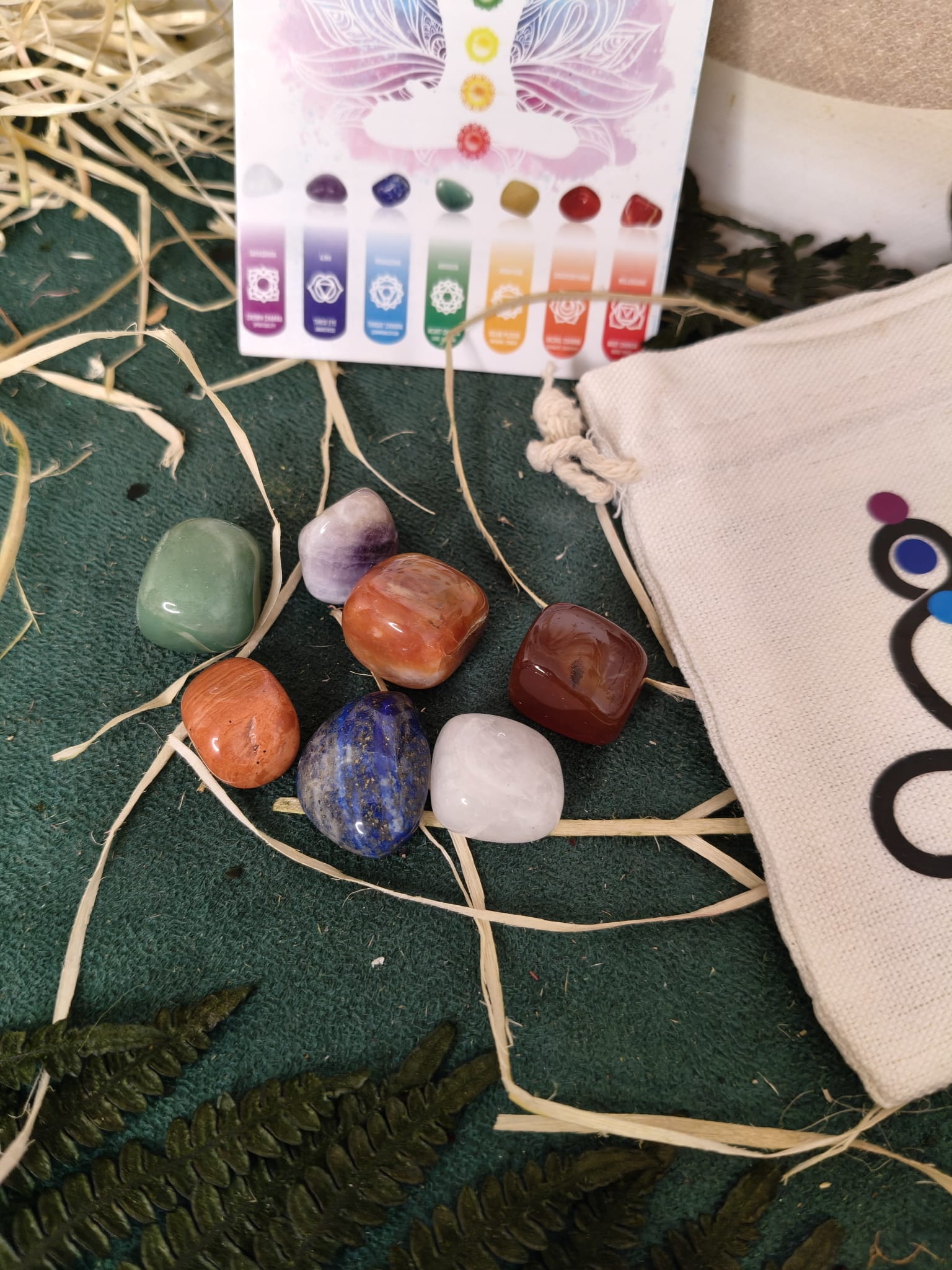 Incluye un folleto explicativo en 6 idiomas con el significado y uso de cada piedra, y una bolsa de tela para guardarlas y transportarlas cómodamente.