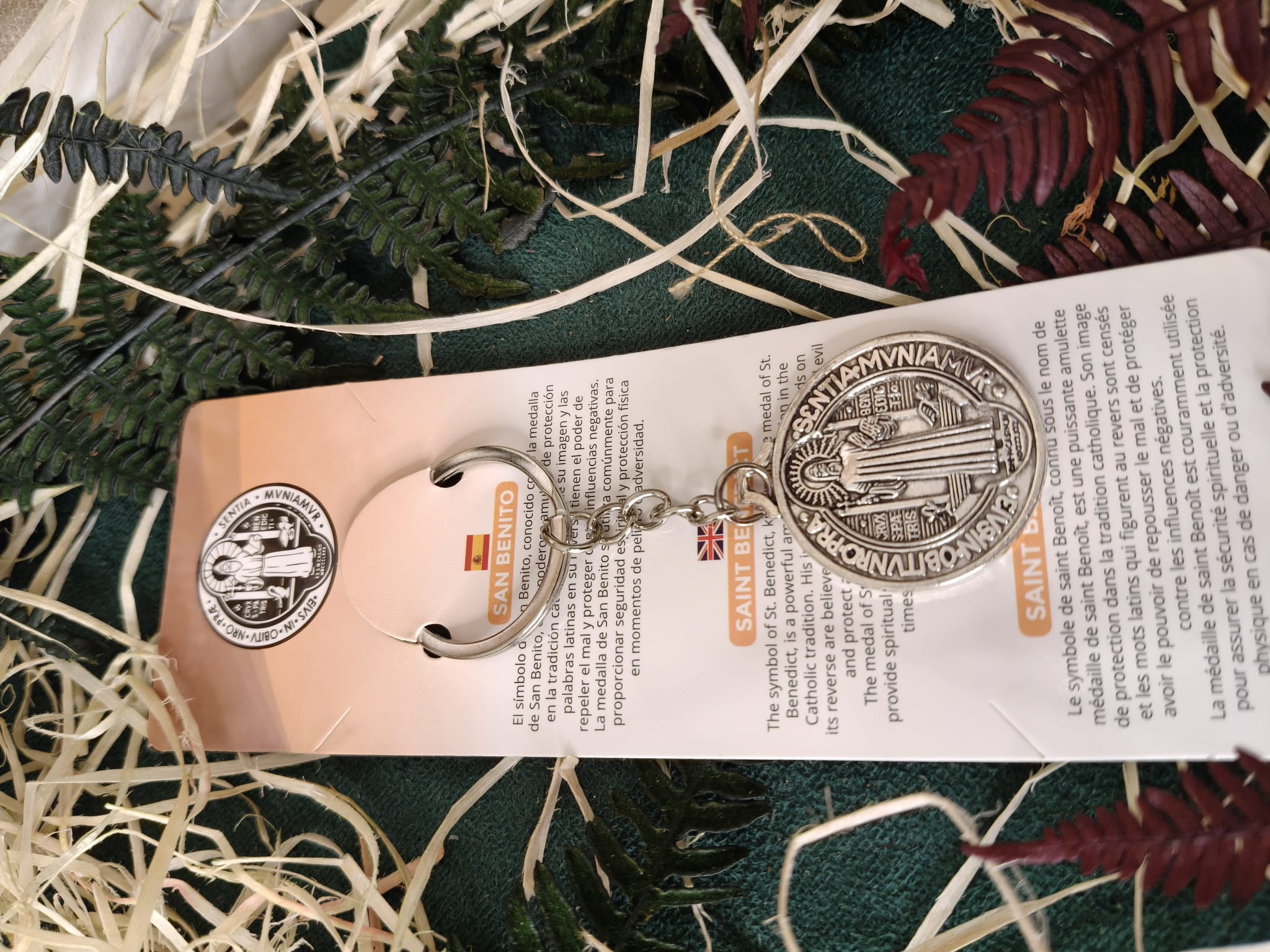 Llavero de San Benito – Protección y Bendición ✨🙏 Este llavero con la medalla de San Benito es un poderoso amuleto de protección y bendición. La cruz de San Benito es reconocida en el mundo espiritual por su capacidad para alejar el mal, brindar protección y atraer la paz y la fortaleza espiritual.