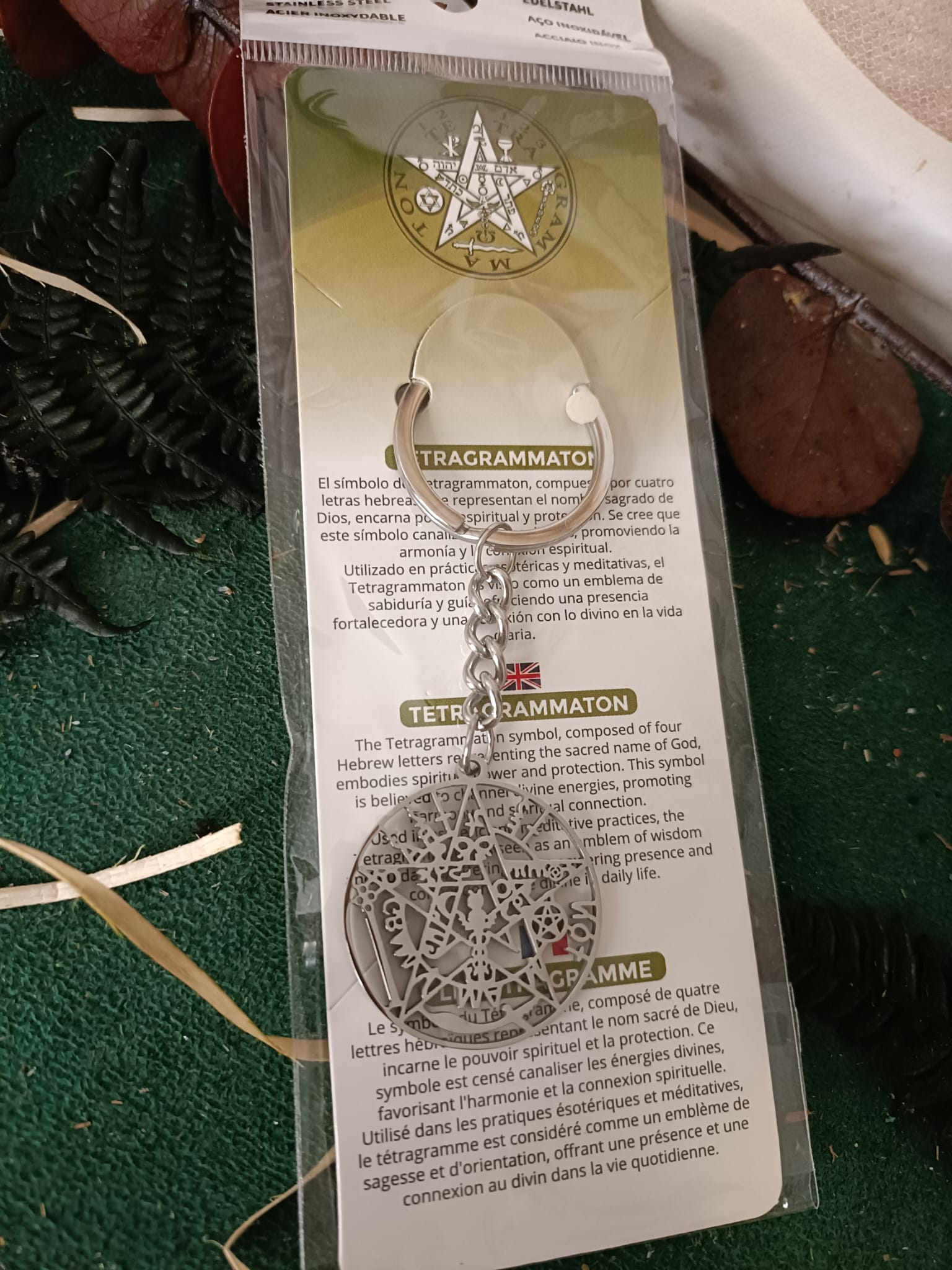 Llavero de Acero Inoxidable Tetragrámaton – Protección y Poder Mágico 🔥🔷 Este llavero de acero inoxidable con el símbolo del Tetragrámaton es un poderoso amuleto de protección y energía mágica. El Tetragrámaton es un antiguo símbolo esotérico que representa la supremacía del espíritu sobre la materia y la defensa contra energías negativas.