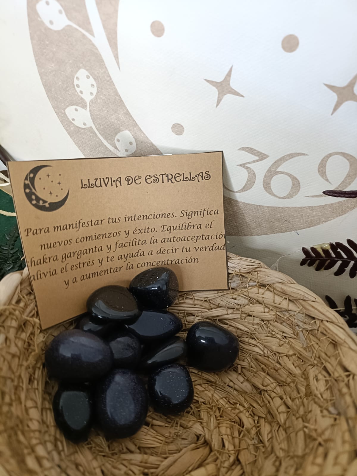 La Lluvia de Estrellas, también conocida como aventurina azul, es una piedra ideal para manifestar tus intenciones y atraer nuevos comienzos y éxito. Asociada al chakra de la garganta, fomenta la autoaceptación, ayuda a aliviar el estrés y potencia la comunicación sincera, permitiéndote expresar la verdad de manera clara y auténtica.