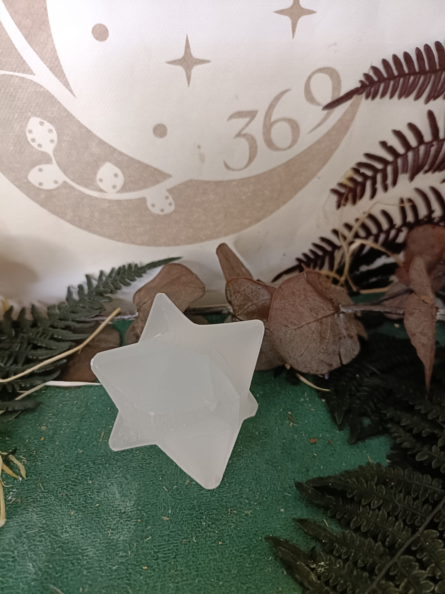 🔯✨ Merkaba de Selenita Blanca – Elevación Espiritual y Protección ✨🔯. El Merkaba de Selenita Blanca es una poderosa herramienta de sanación, protección y activación espiritual. Tallado artesanalmente en selenita natural, su geometría sagrada potencia la conexión con planos superiores, armoniza la energía y ayuda en la meditación y el despertar espiritual.