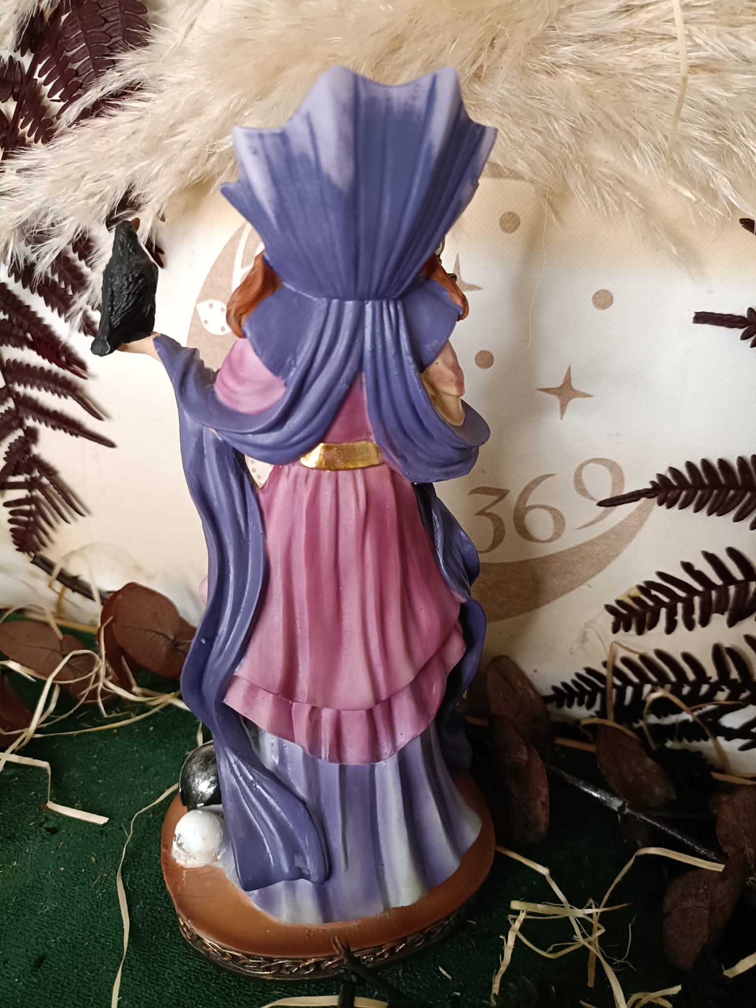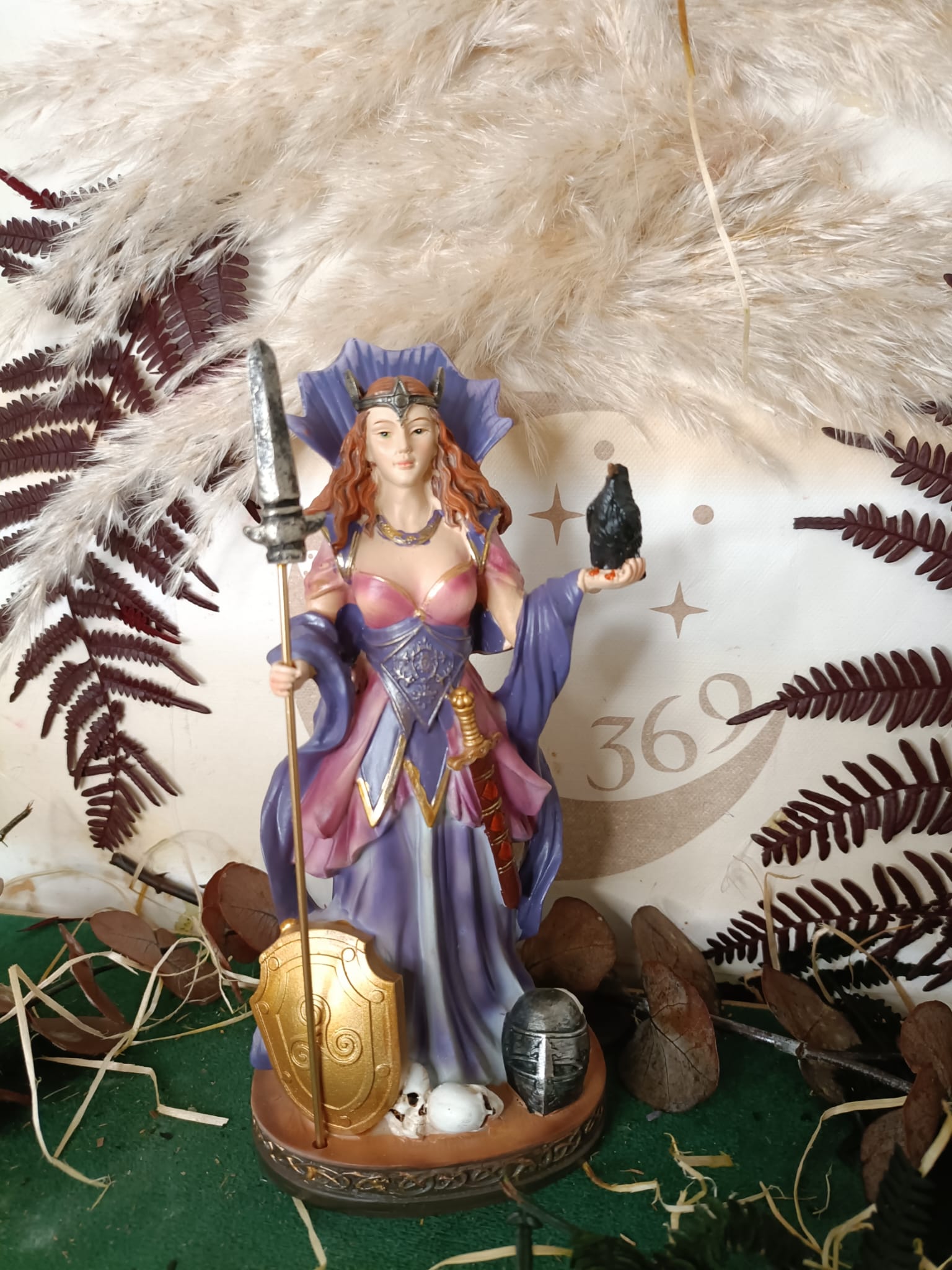 Morrigan (Morgana) con Cuervo – 20 cm Descubre la figura mística de Morrigan, la poderosa diosa de la guerra y la sabiduría, representada con su símbolo, el cuervo. Esta impresionante pieza de 20 cm está hecha de resina de alta calidad y pintada a mano, asegurando un acabado detallado y único.