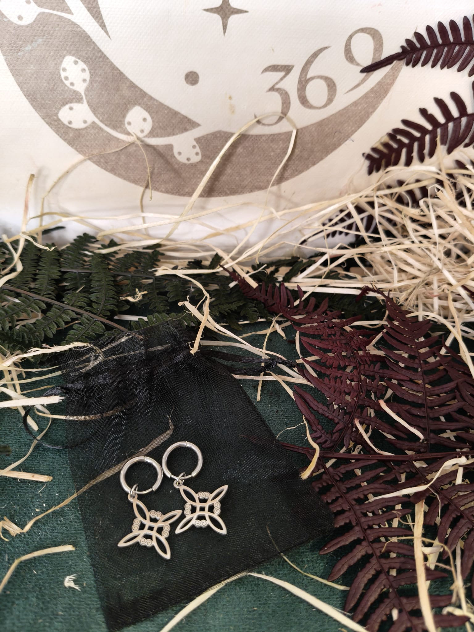 Pendientes de acero inoxidable con Nudo de Bruja y cierre de aro. Amuleto protector contra energías negativas con diseño elegante y resistente. Protege tu energía con estos pendientes de acero inoxidable con Nudo de Bruja, un símbolo ancestral utilizado durante siglos como amuleto contra energías negativas, mal de ojo y malas intenciones. Su diseño con cierre de aro les da un toque moderno y cómodo para el uso diario, sin perder su fuerza esotérica.