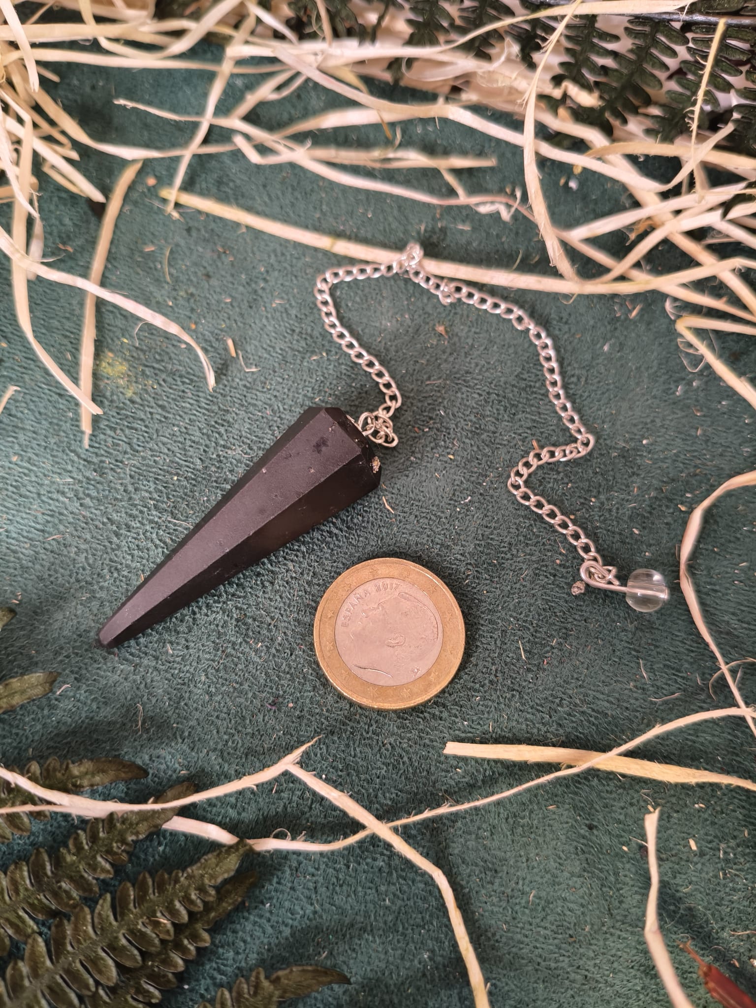 El péndulo de turmalina negra facetada es una poderosa herramienta radiestésica realizada en piedra natural. Su color intenso y opaco, característico de esta gema volcánica rica en hierro, lo convierte en un aliado ideal para trabajos energéticos y espirituales.