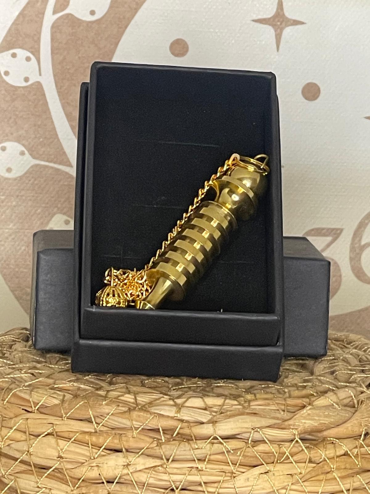 Elaborado en latón con baño dorado, garantizando durabilidad y un acabado elegante.