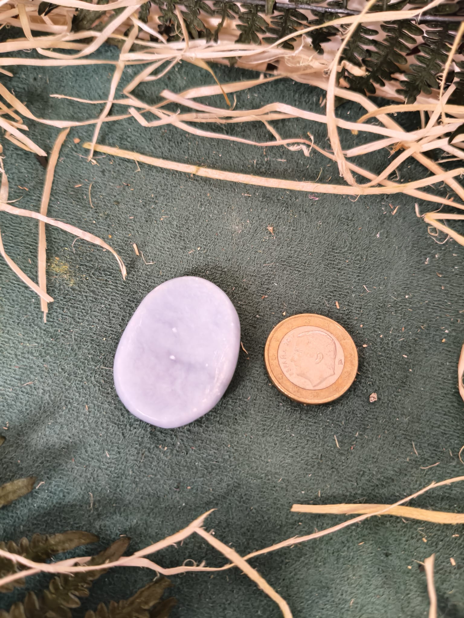La piedra para el pulgar de angelita, también conocida como worry stone o piedra de preocupación, es una gema lisa y pulida con una hendidura especial para colocar el pulgar. Su uso está pensado para aliviar la tensión y favorecer la calma al frotarla suavemente con el dedo, ofreciendo una experiencia relajante y meditativa.
