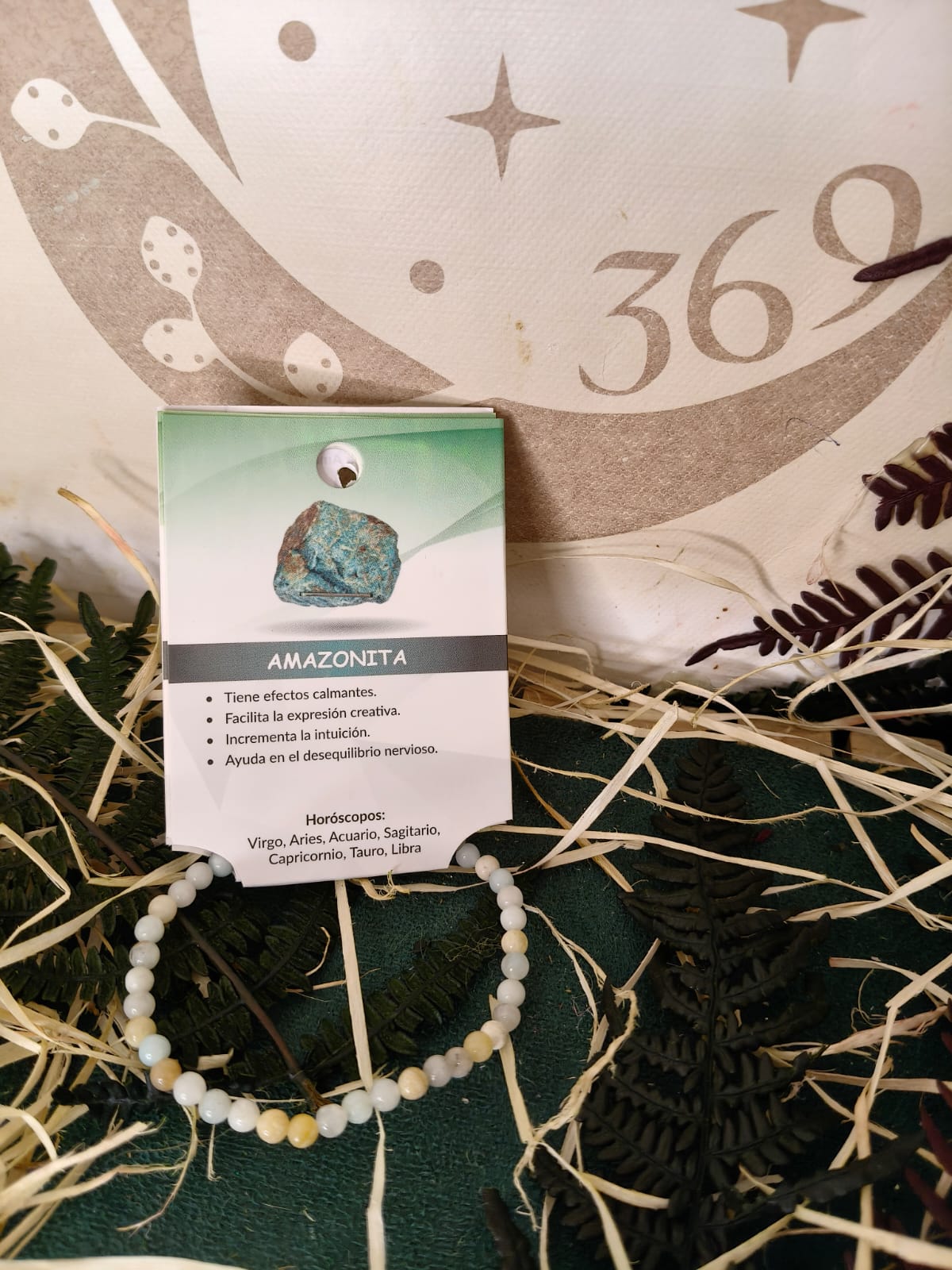 La Pulsera de Bolas de Amazonita de 4mm es un accesorio lleno de belleza natural y poder energético. La Amazonita es una piedra asociada con la calma, la comunicación sincera y la liberación de bloqueos emocionales, siendo ideal para quienes buscan armonía interior y equilibrio en sus relaciones.