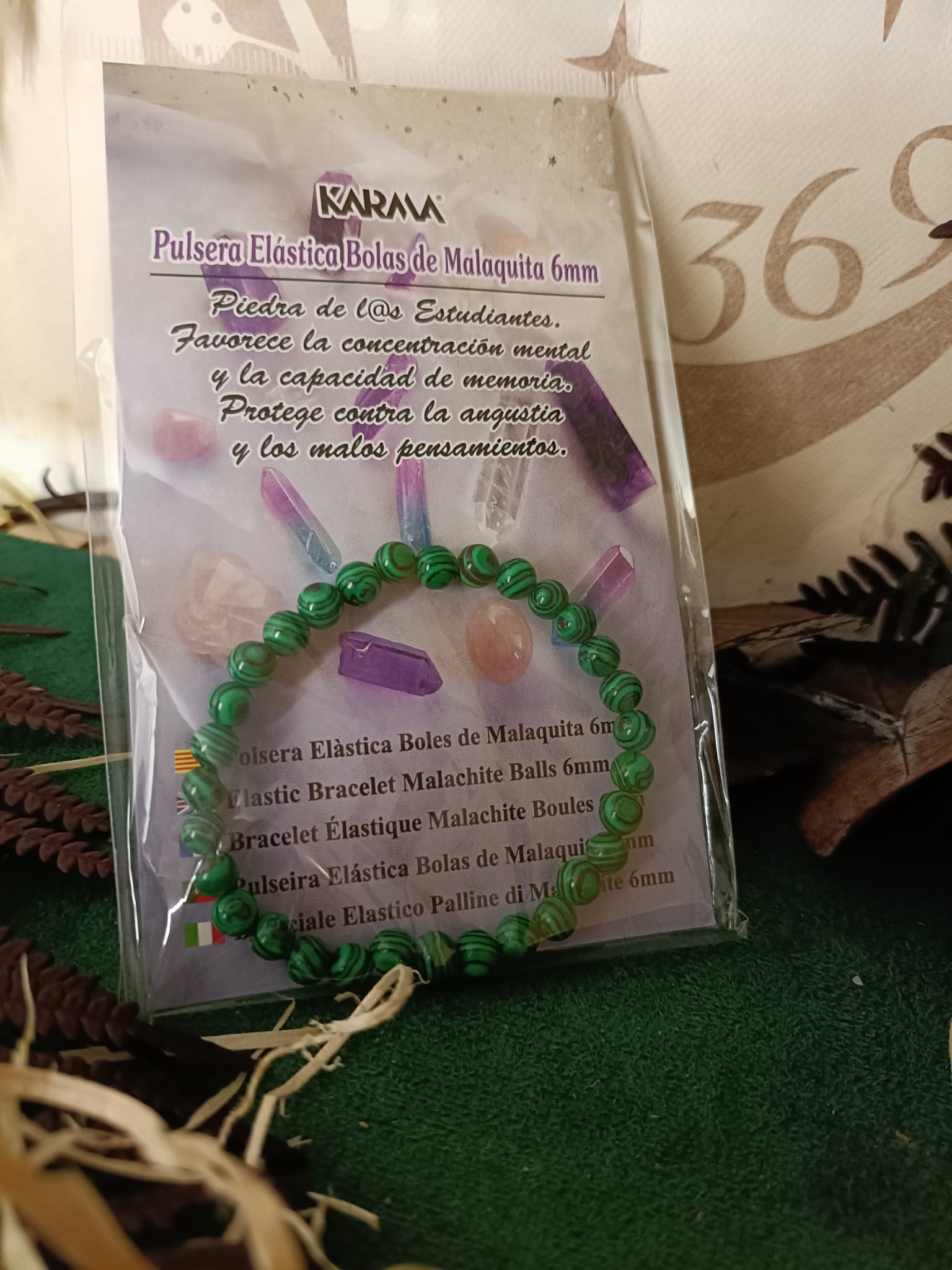 Pulsera Elástica de Malaquita Natural – Bola 6 mm. Protección, transformación y sanación emocional