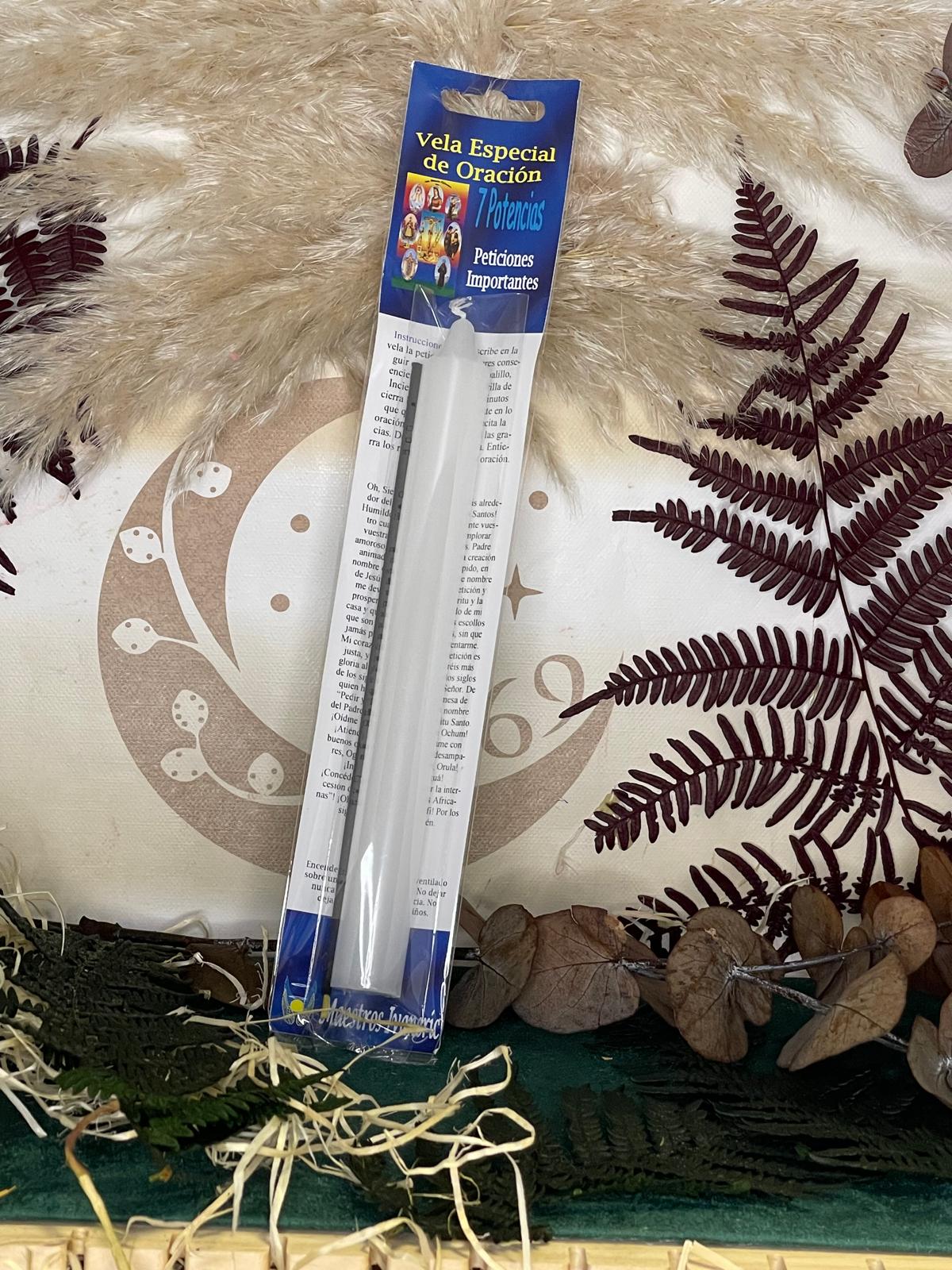 Todo Tipo de Peticiones La Vela Especial Potenciada con Oración 7 Potencias es un poderoso instrumento espiritual diseñado para realizar todo tipo de peticiones y rituales esotéricos. Este producto incluye una vela de alta calidad, una oración dedicada a las 7 Potencias y un cono de incienso, elementos que te ayudarán a canalizar tus intenciones con mayor efectividad.