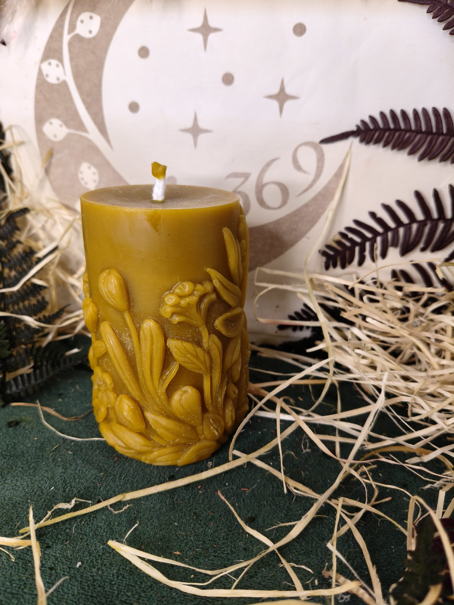 Su luz cálida y su aroma natural a miel generan un ambiente de calma, devoción y conexión con lo sagrado.