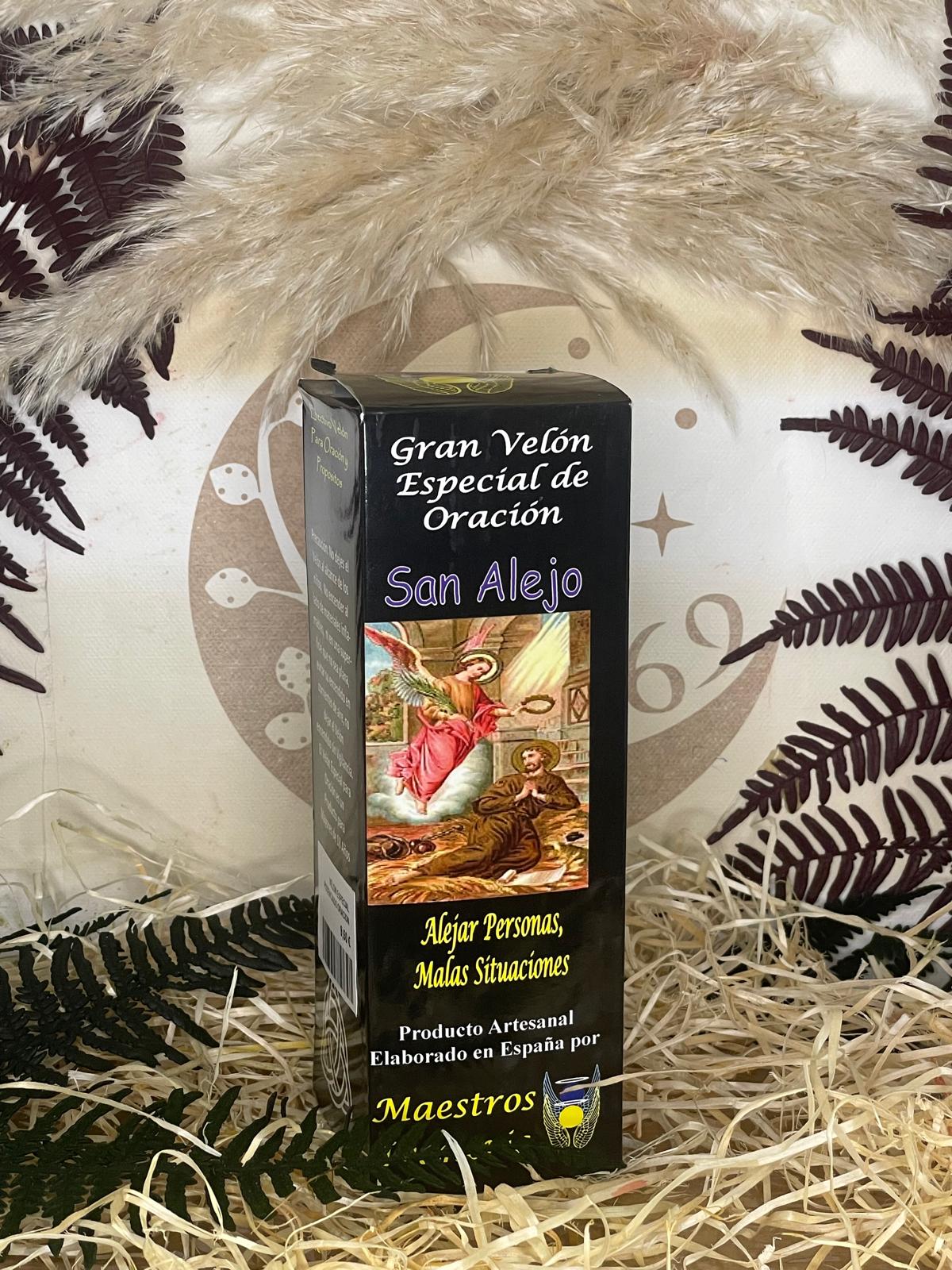 Disponible para compra online o en nuestra tienda Lunaria369 en Sanxenxo, Pontevedra. ¡Protege tu vida de las influencias negativas con el Velón Especial Potenciado con Oración San Alejo!